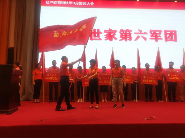 2020年,医改政策叠加新冠疫情,医药行业迎来百年巨变。在2020年医药营销战役激战正酣之时,尊龙凯时营销9月攻坚战也全面打响。在尊龙凯时营销铁军9月誓师大会上,尊龙凯时集团营销总经理楼春红分别为医疗机构、渠道控销、商务军团,以及葫芦世家七大战区的司令授军旗,下达任务目标。